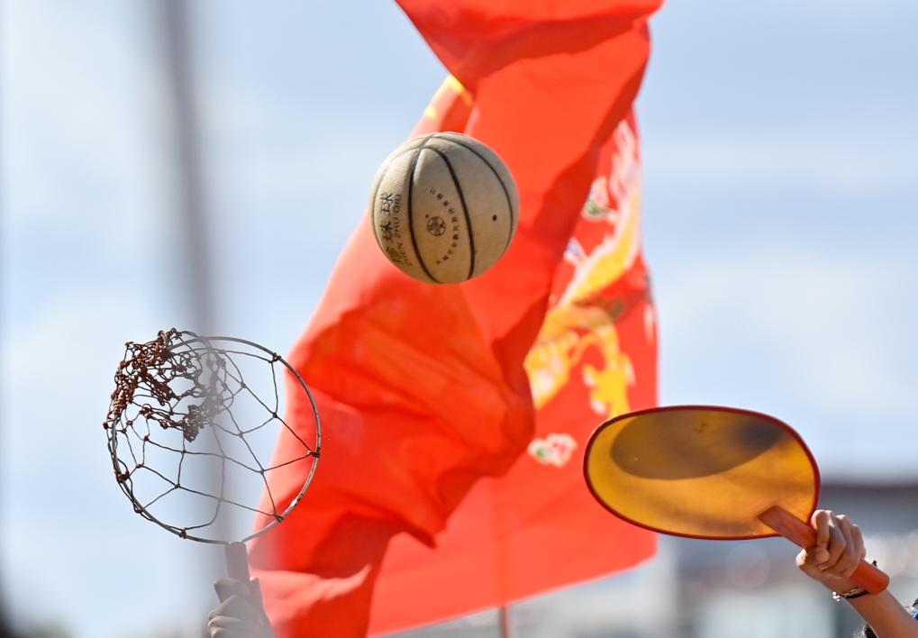 9月16日,乌拉街满族中学学生在操场进行珍珠球比赛。