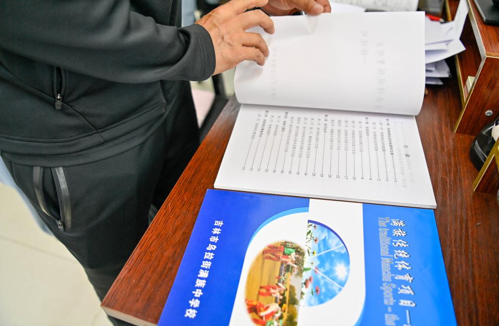9月16日,乌拉街满族中学体育教师李明展示学校编写的珍珠球教材。