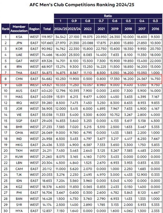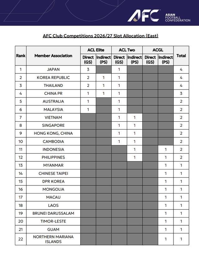 下赛季亚冠名额分配↓