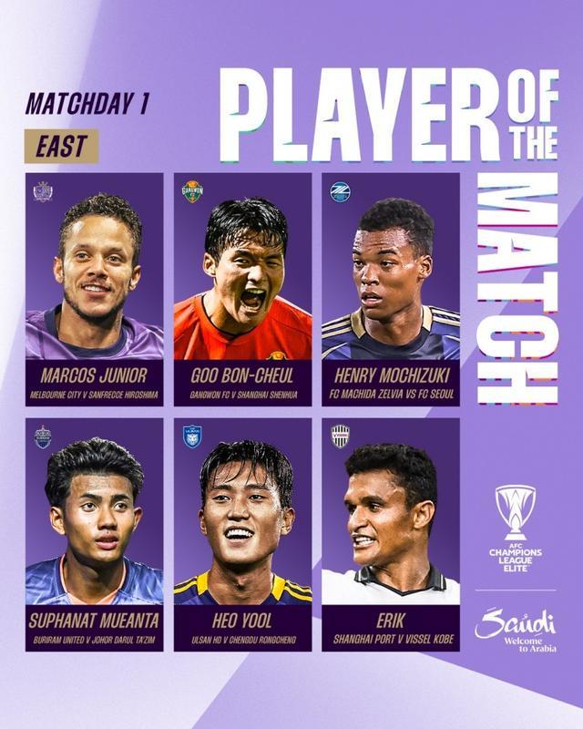 亚冠精英联赛小组赛首轮东亚区最佳球员候选
